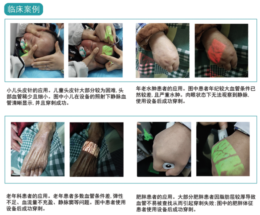 血管顯像儀主要是利用血液中血紅蛋白對近紅外光的吸收強于其他組織的原理,通過經過紅外背向光散射圖像采集微投影技術等一系列手段,將皮下血管原位投影于皮膚表面,進而輔助醫護人員進行淺表血管的查找、評估與定位等。能有效提高患者滿意度、減輕護士心理壓力、降低護士工作強度、保護醫患人員的安全。